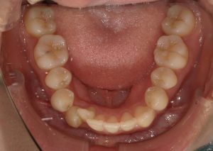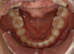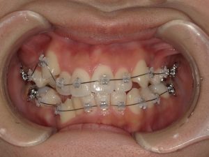 治療中の様子(マルチブラケット装置+金属ワイヤー)