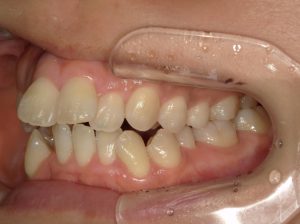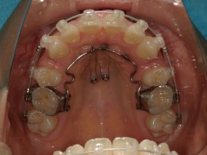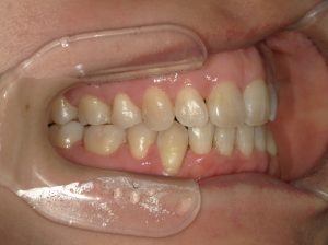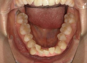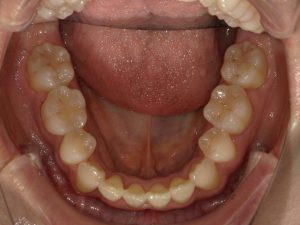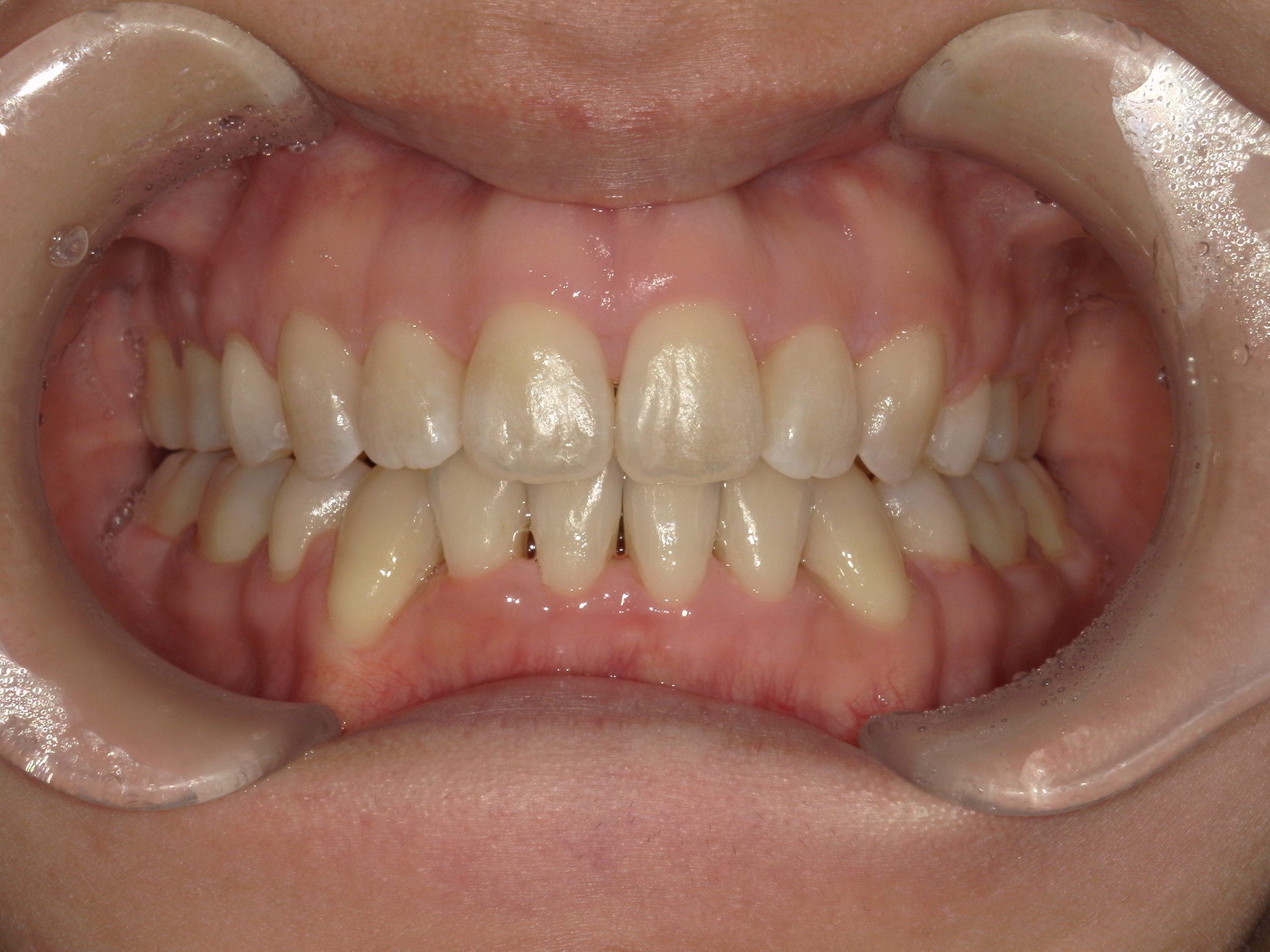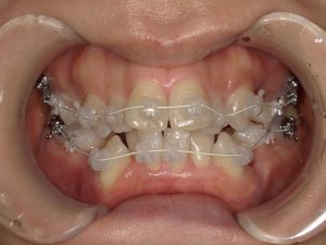 治療中の様子(マルチブラケット装置+ホワイトワイヤー)