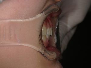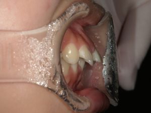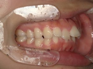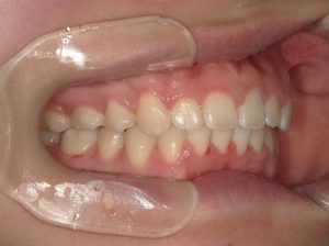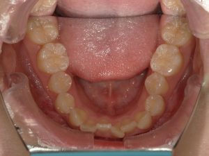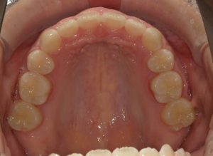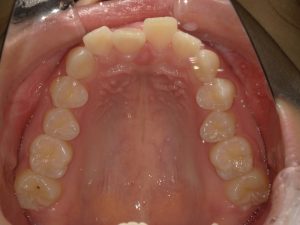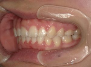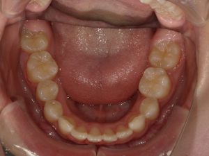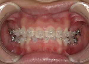 治療中の様子(マルチブラケット装置+ホワイトワイヤー)