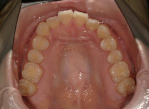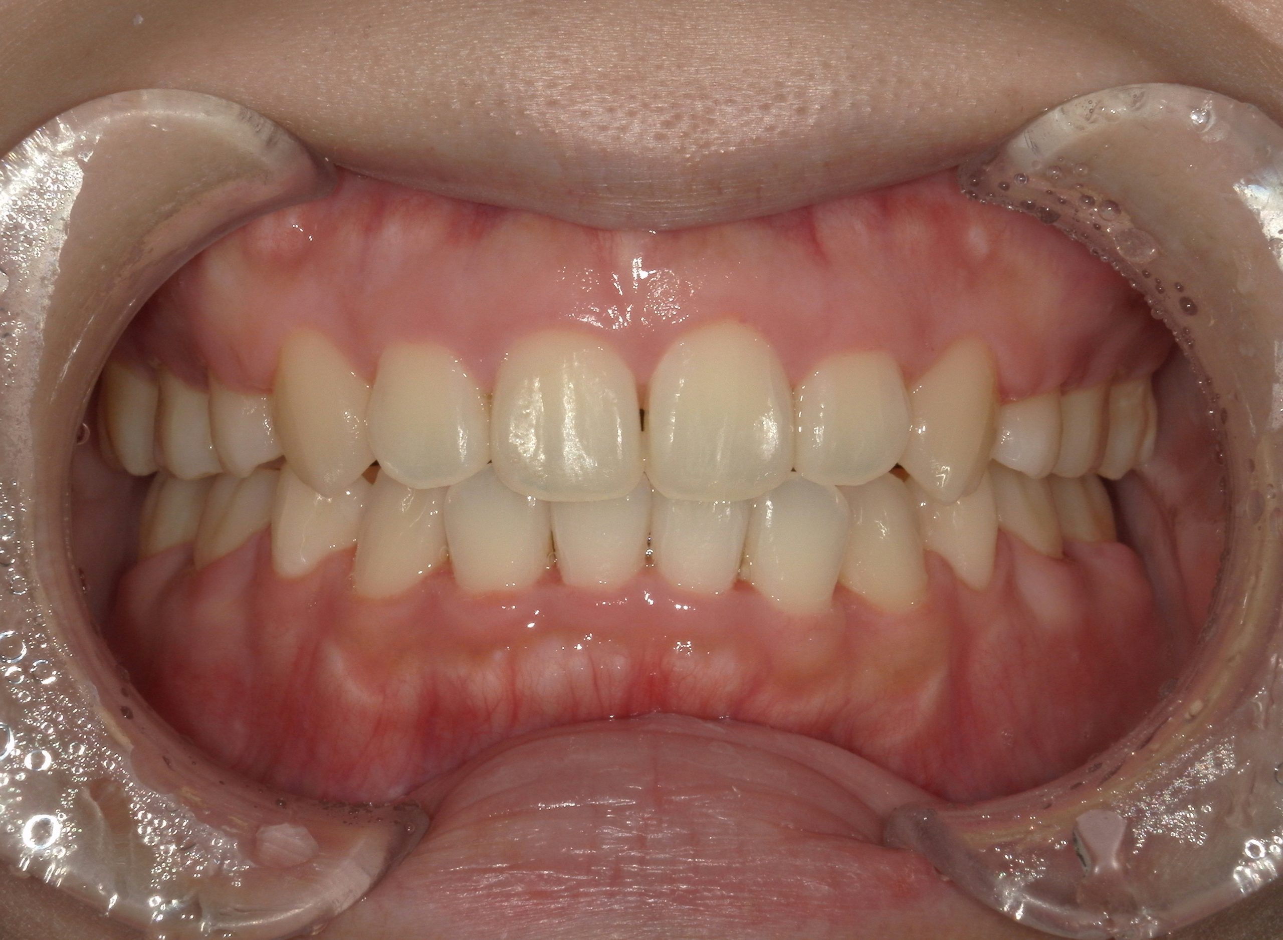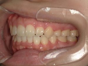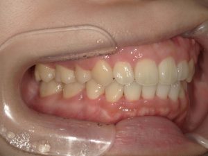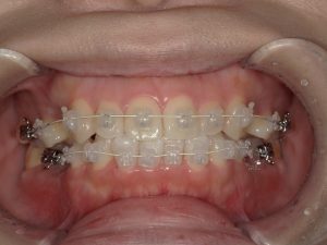 治療中の様子(マルチブラケット装置+ホワイトワイヤー)