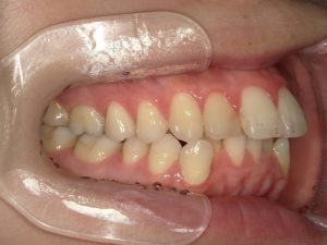 骨格的に強い上顎前突でしたが、アンカースクリューを用いて適正な位置まで前歯を移動させ、また、歯の傾きを工夫することで良好な咬み合わせとなりました。