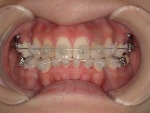 治療中の様子(マルチブラケット装置+ホワイトワイヤー+アンカースクリュー)